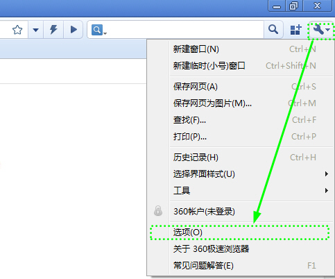 點擊瀏覽器右上角的設置圖標-選項,彈出選項對話框。
